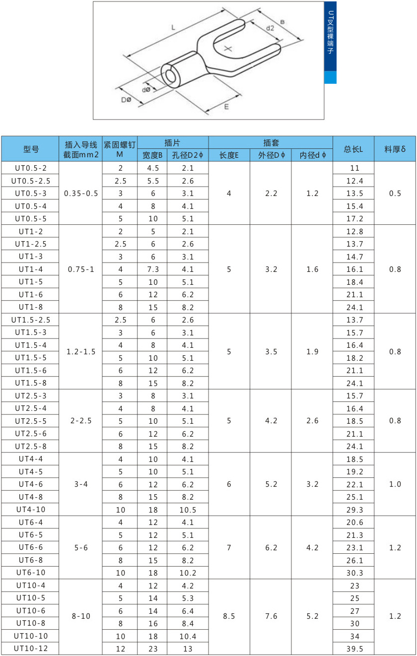 UT叉形裸端子銅鼻子